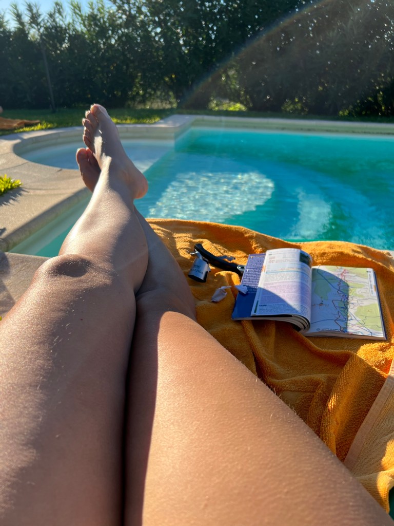 As I write this I have my feet soaking in an ice cold swimming pool at Quinta das Leiras, a paradise and a fabulous find. Hulmet and Heidi, the owners of the home are away in Germany, he had his neighbour let us in. The fridge is stocked with drinks. Leave a euro on the desk if you take one, he said when we booked the room. The Camino honour system at work! There are a few other people staying here but Leslie and I, along with Gerlinda from Germany, are the only ones by the pool. We lucked out on this find!