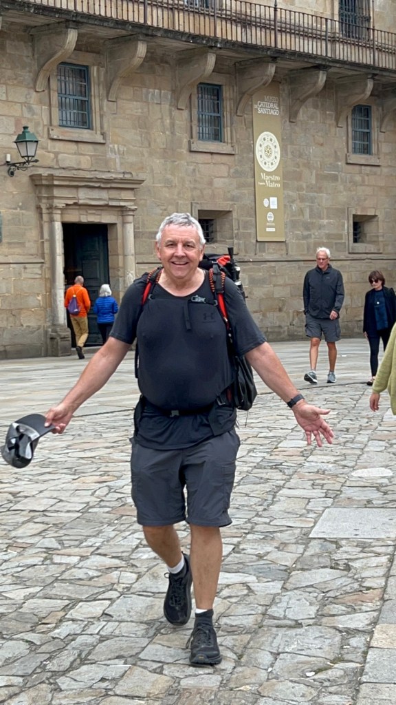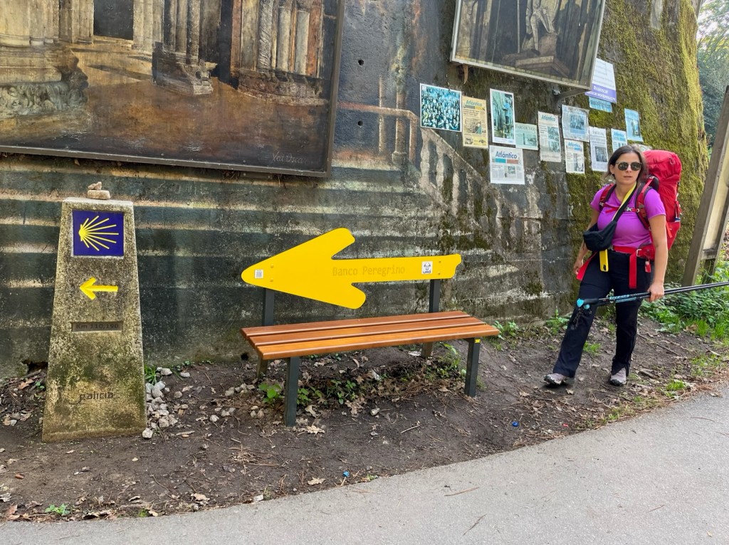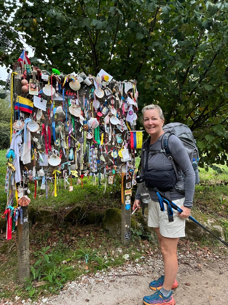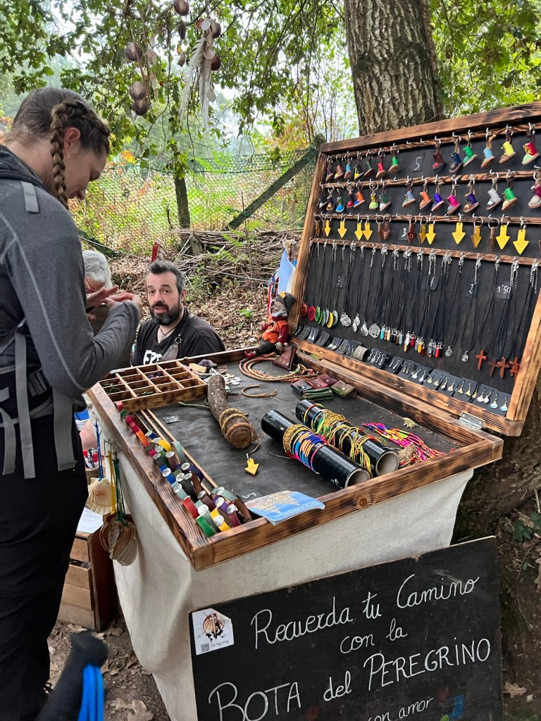 Bloopers … but is this not the oddest shaped statue Caldas de Reis fellow pilgrim we passed the whole way … posing with a pilgrim statue Lovely Spaniard we crossed paths with towards the end. Hard to understand. Walking the path in gratitude after surviving throat cancer. He radiated kindness Somewhere on the path…. We took the variant, might have added a km but well worth it not to walk on the road. It rained one day only More sheep Day 11 getting closer to our destination Steep climb Steep decent Congratulatory meal at the Parador ! Tapas in Santiago. Same place I’d been to 3 years prior . Delightful experience ! Do you think the store owner was trying to tell people something ? Bbq chorizo à la Bubbles and Tapas Last dinner in porto, our waitress Christina. At only the most fitting place for these two : Bubbles and Tapas Santa Marta chapel 💒 A little detour brought us to this lovely lady and her delicious Bocadillos Portugal to Spain Worth it